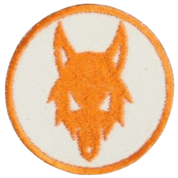 Der orangene Wolfskopf ist das Zeichen der Wölflinge. Diese tragen ihn auf der linken Brusttasche der Kluft.